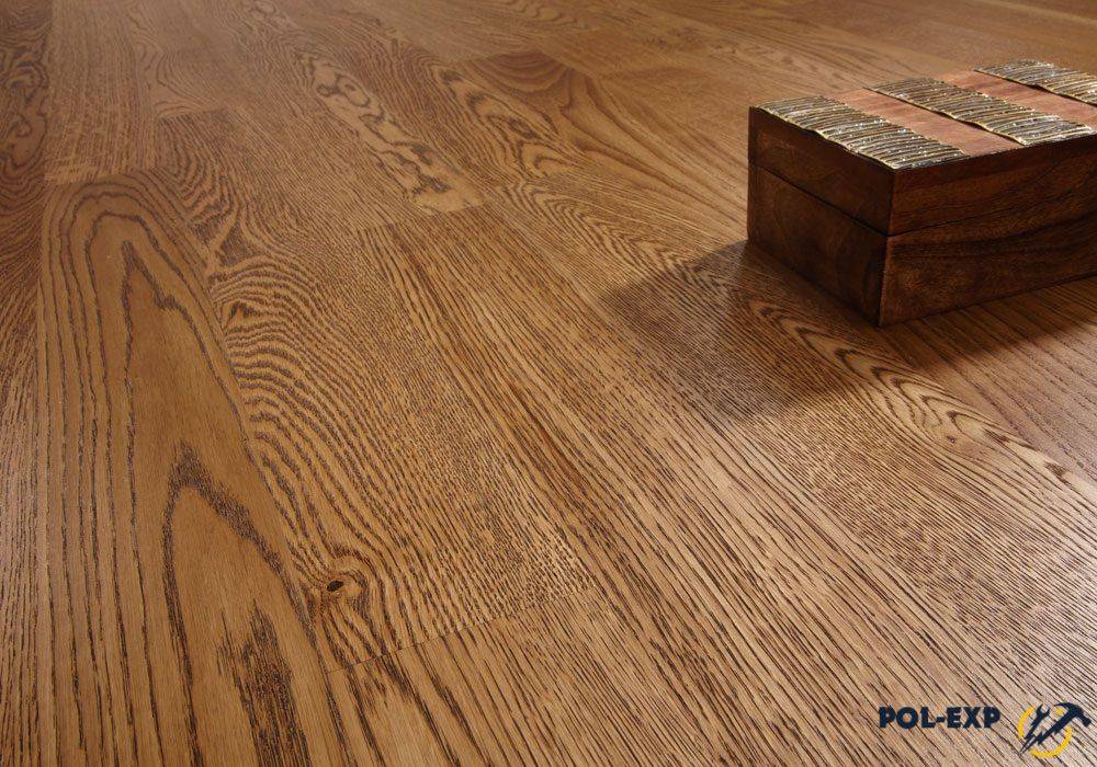 Универсальный материал для паркетной доски, в продаже имеется широкий спектр цветовых решений – дуб беленый, натуральный, золотистый и т. п. С помощью тонировок производители имитируют древесину дуба под экзотические породы – венге, орех, эбеновое дерево. Текстуру дуба подчеркивают с помощью состаривания, тонирования и браширования. Доска из дуба выдерживает сухость воздуха в отопительный сезон.