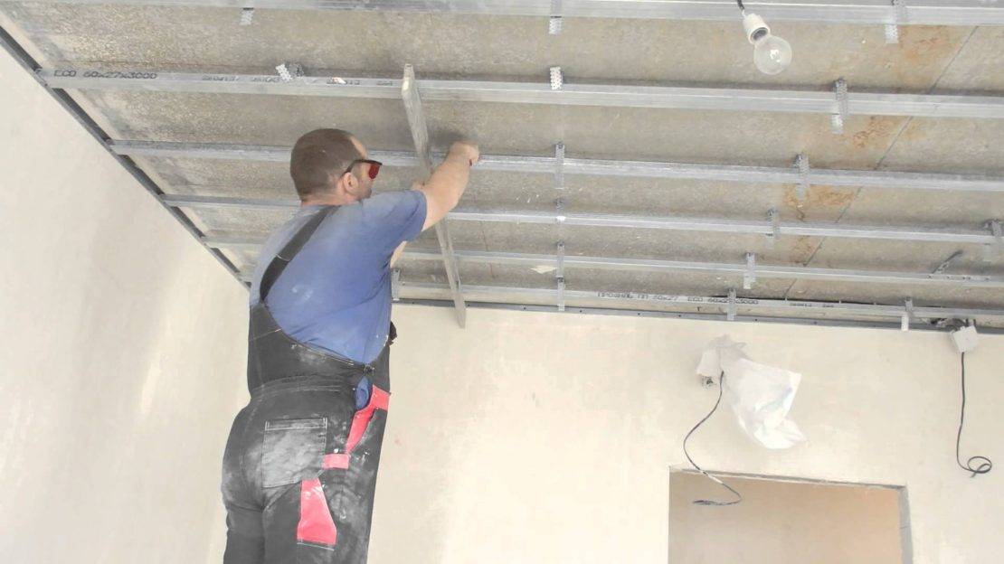Монтаж каркаса из металлического профиля и подвесного гипсокартонного потолка