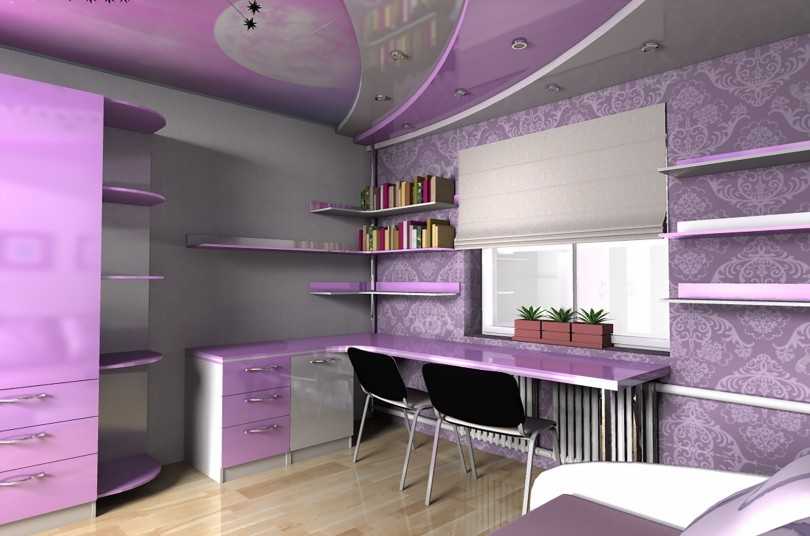 Потолки в этом случае становятся воплощением любых фантазий. Любые неожиданные идеи могут быть реализованы и не нужно быть профессионалом — все можно сделать своими руками. В детской можно устроить великолепную иллюминацию. Не пропорциональные, разноплановые, с встроенными точечными светильниками. Самые оригинальные идеи! Любую форму потолку можно придать посредством этого материала. Что примечательно, за ним не нужен особый уход. Этот вариант декорирования используется для потолка в любых помещениях. Им можно закрыть любые недостатки рабочей поверхности. Он звуконепроницаем.