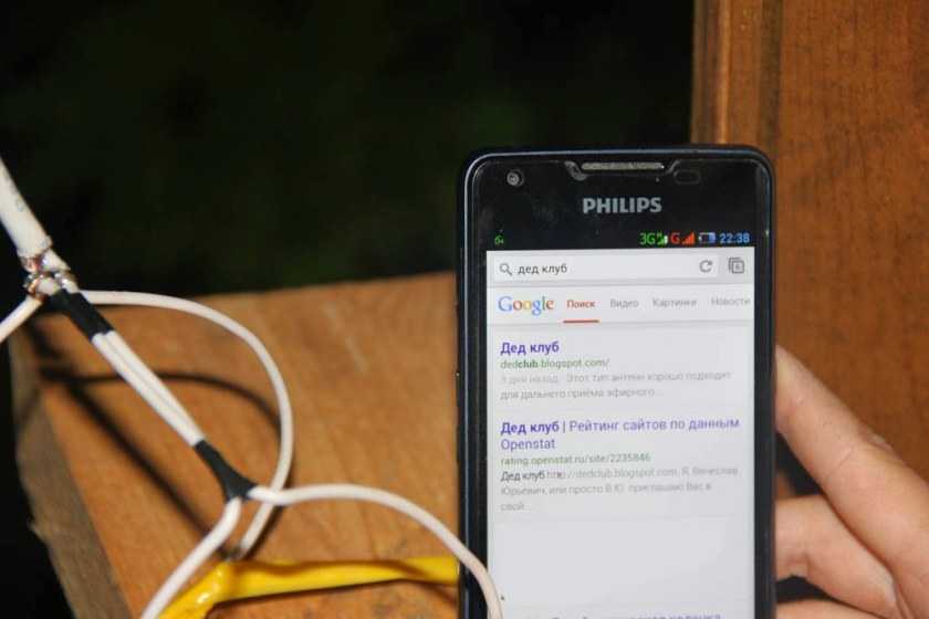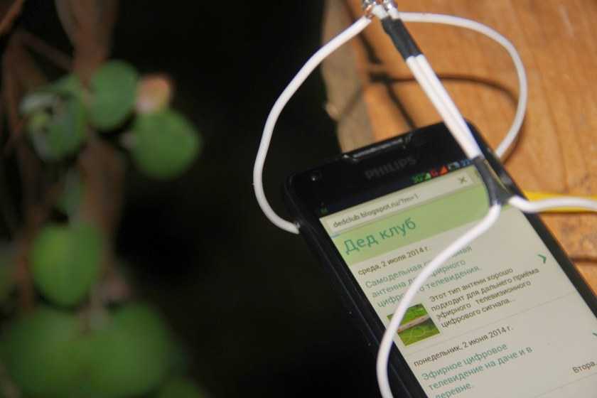 - Полученную конструкцию крепим на крышу дома, а свободный конец кабеля, используя адаптер, подключаем к мобильному устройству.