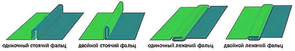 Далее, чтобы сделать дефлектор на дымоход своими руками, нужно освоить некоторые приемы жестяницких работ. Прежде всего – соединение листов в фальц (сгиб), или фальцовку см. рис. ниже. Чаще всего детали дефлекторов соединяются одиночным лежачим фальцем, но для зонтов несовершенных дефлекторов в декоративных целях иногда используется двойной стоячий фальц.