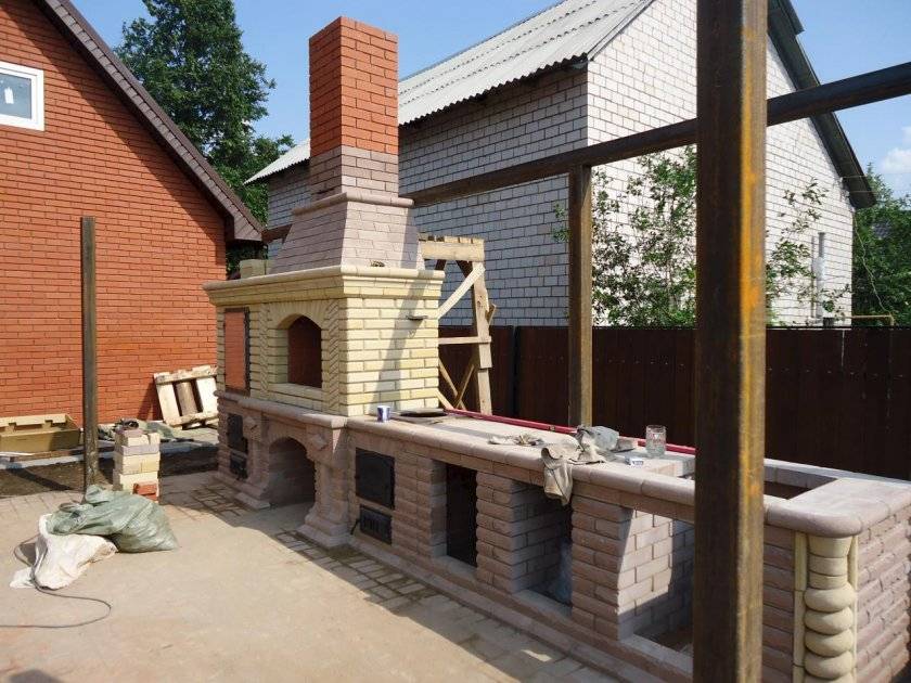 Владельцы загородных домов для постоянного проживания и любители принимать гостей оценят возможности полноценного кулинарного комплекса. Монтаж подобной конструкции следует согласовывать с профессионалами, а саму беседку выстраивать вокруг неё.