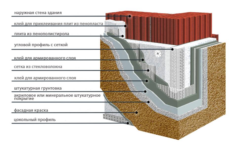 Отделку фасада плитами пенопласта выполняют в четыре этапа: