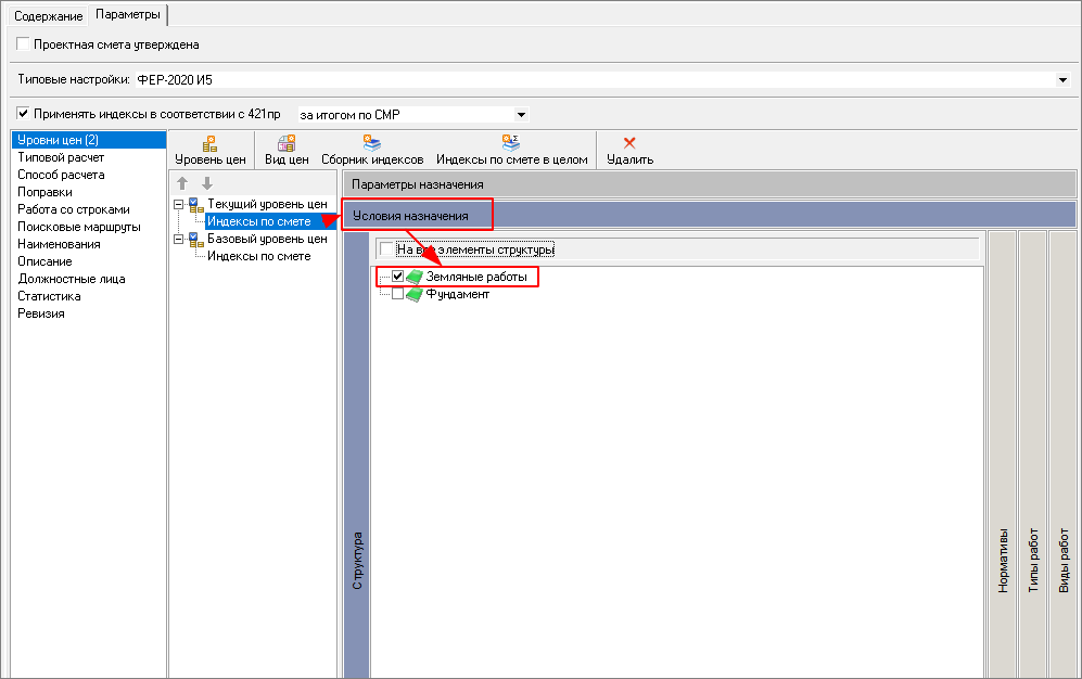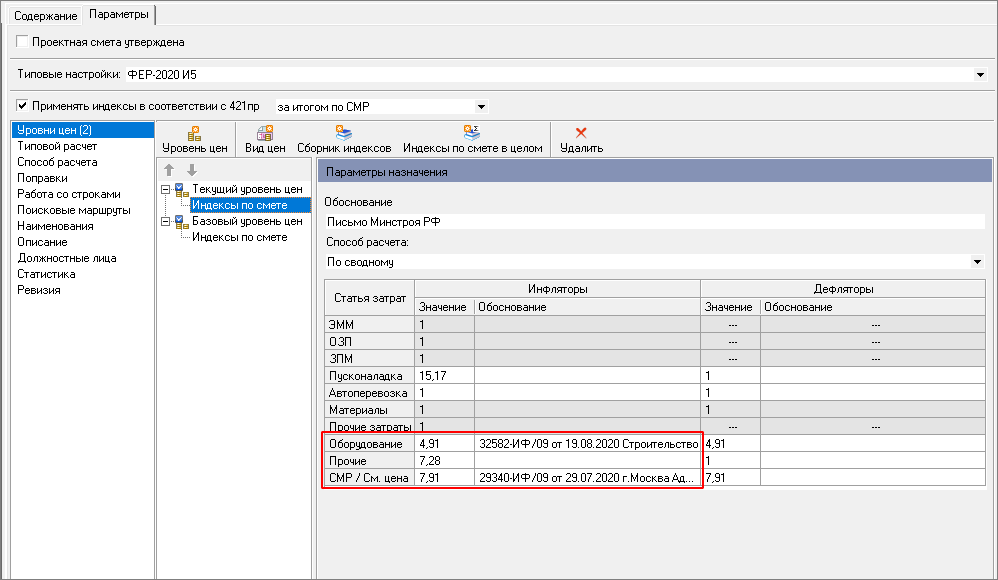 Настройка Применять индексы в соответствии с 421пр позволяет изменить способ расчета в соответствии с Методикой определения сметной стоимости строительства: