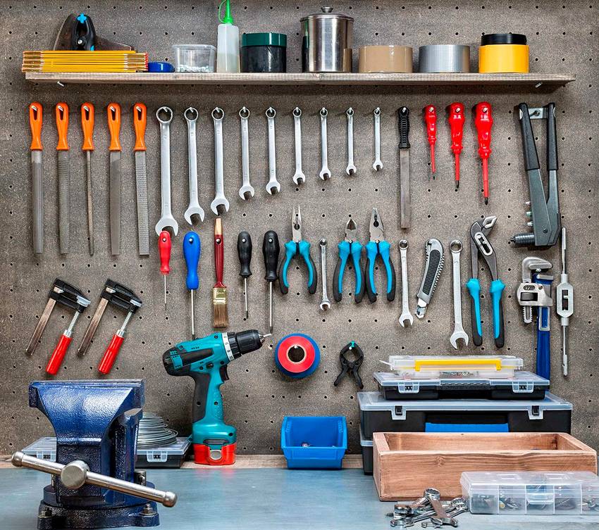 - Стены вокруг рабочего места рекомендуется использовать для подвешивания инструмента. Необходимо учесть, чтобы при работе от вибрации не падали отвертки, ключи, молоток и другие приспособления.