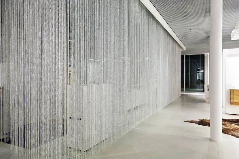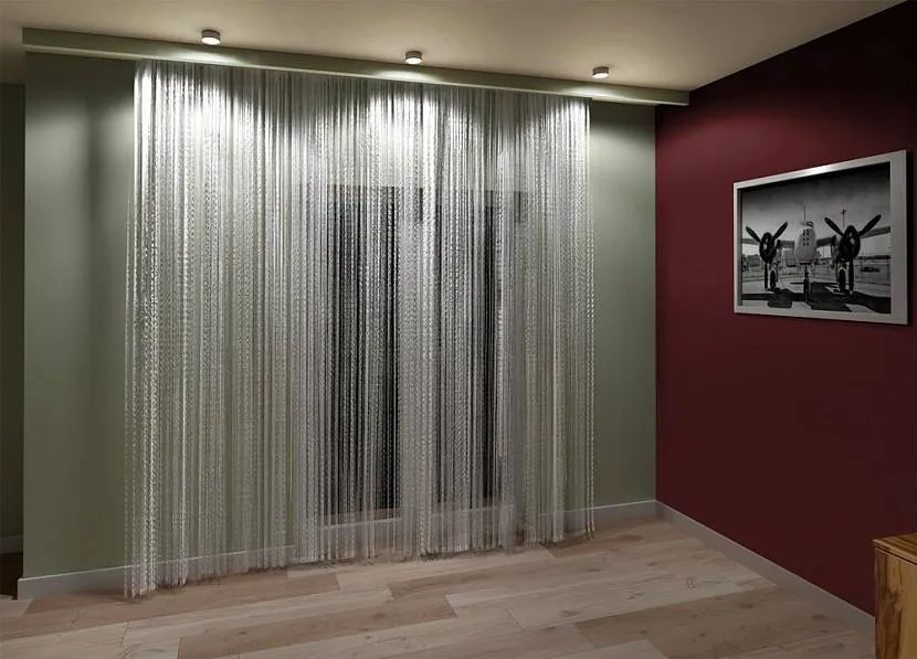 Если ваш пространство вашего дома исключает нахождение в нем домашних животных и детей, использование нитяных штор в интерьере – отличное, практичное и стильное решение.