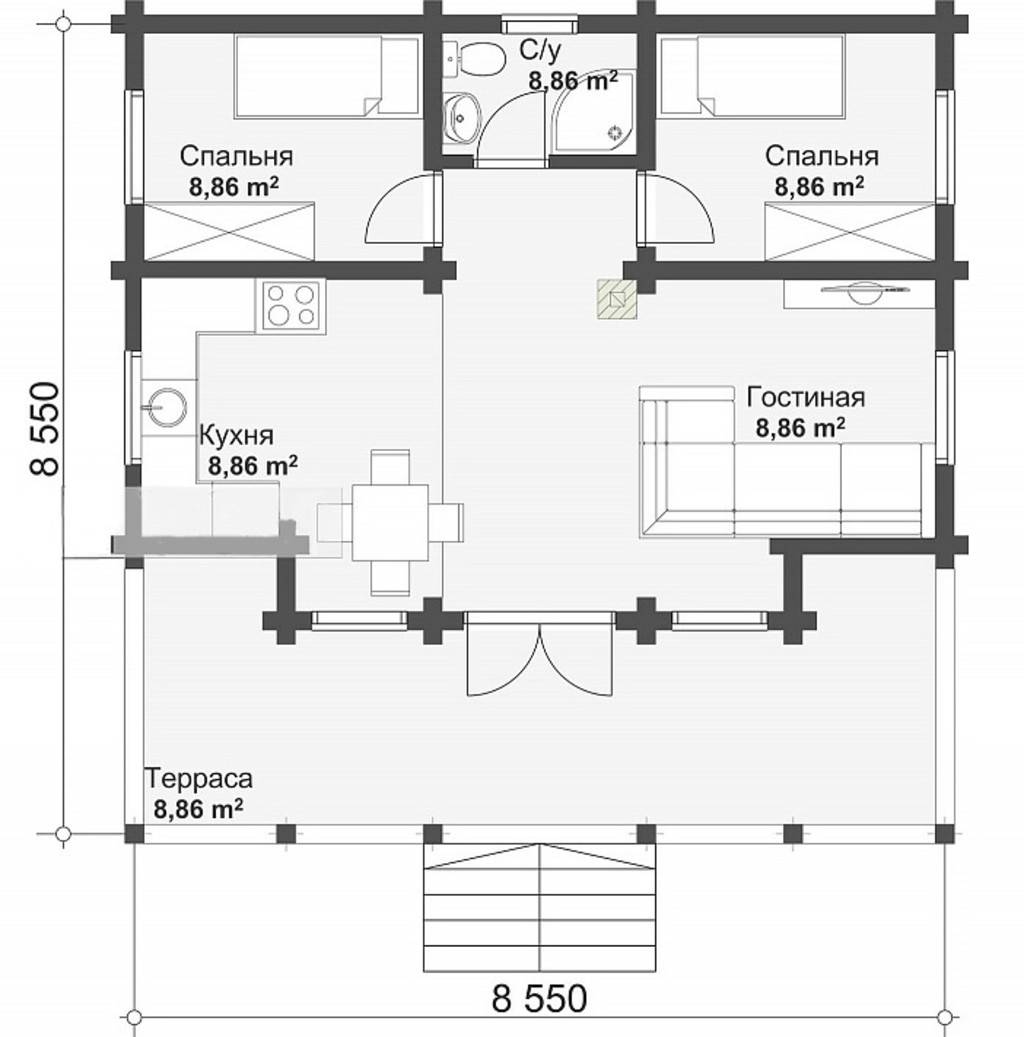 К примеру, одним из типовых скандинавских проектов является одноэтажный недорогой дом площадью 66 м2, в котором: