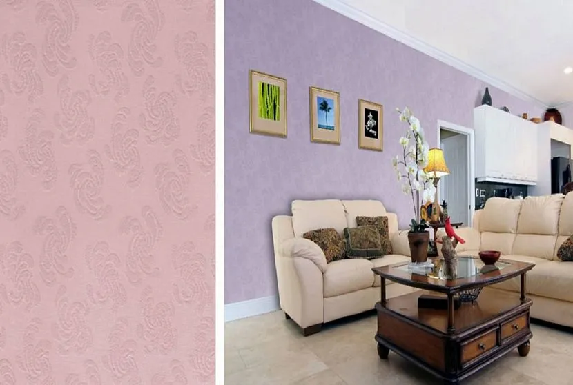 Вблизи рисунок обойного полотна кажется сложным, а вдали напоминает однотонный вариант