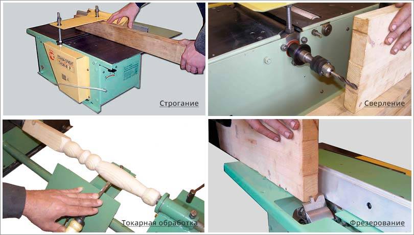 Универсальность деревообрабатывающего станка подразумевает наличие множества функций. В общем плане каждое подобное оборудование должно уметь: