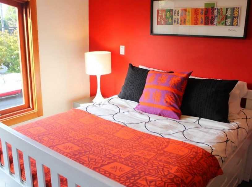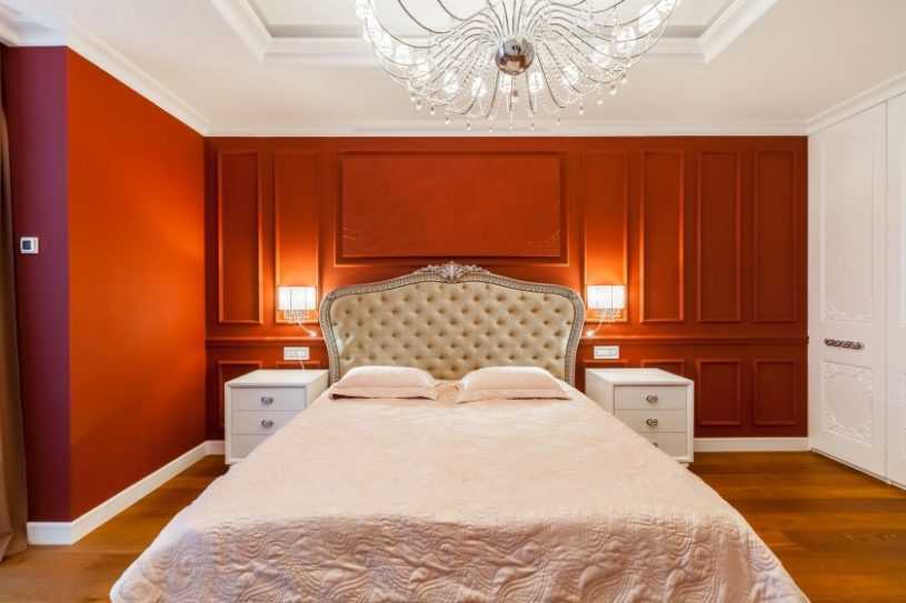 Необходимо правильно подбирать сочетание цветов для спальни. Выбор зависит от разработанного дизайна. Красный великолепно сочетается с серыми и белыми оттенками.
