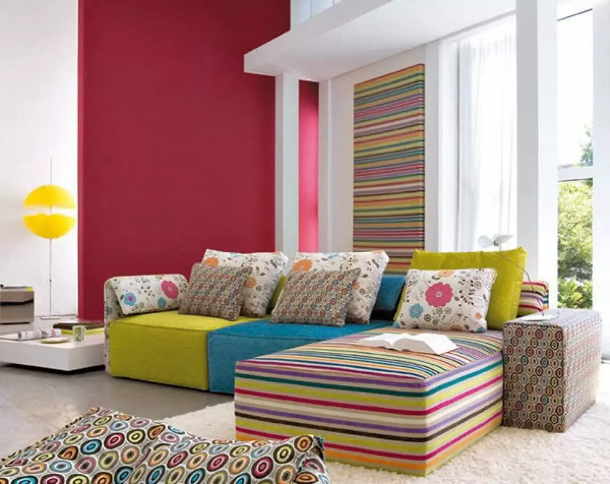 При создании интерьера гостиной стоит определиться с тем, на что будет акцентироваться внимание. Если стены гостиной насыщенных и ярких цветов, то элементы мебели лучше подобрать сдержанных и однотонных расцветок