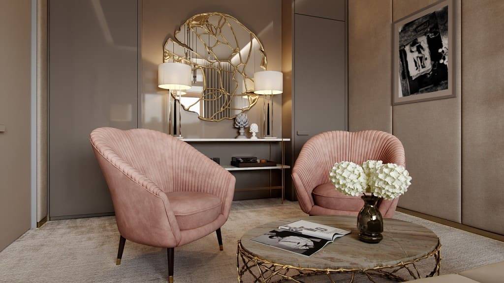 Особенно выигрышно он смотрится в сочетании с элементами декора из мрамора и золота.