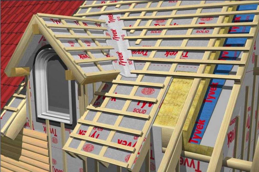 - Монтаж обрешетки, гидроизоляции, и кровельного настила.
