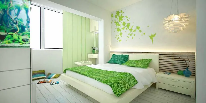 Не стоит спальню оформлять слишком темными оттенками, это может вызвать расстройство сна, нервозность. Лучше остановиться на светлом интерьере. В современном дизайне такие оттенки, как лайм, фисташковый и салатовый применяют в качестве дополнения к основному фону.
