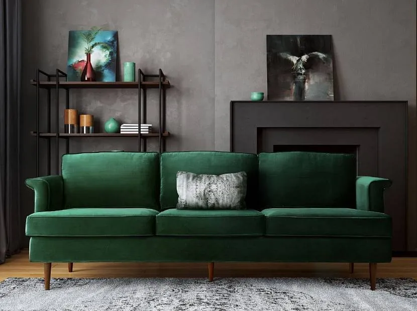 Темно-зеленый диван в интерьереИсточник sovetunion.ru