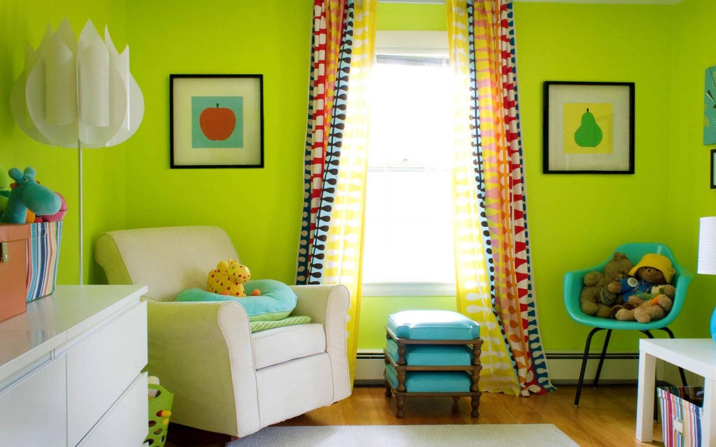 Если взрослый себе в спальню может выбрать яркие вставки зелёного цвета, то это непозволительно для детской. Комната, в которой будет находиться ребёнок, должна быть просторная и светлая, чтобы не было негативных воздействий на детскую психику. Стены лучше оформлять в светлых тонах без резких переходов цветов. Оптимальным вариантом будет выбор серо-зелёного, голубого либо розового фона.