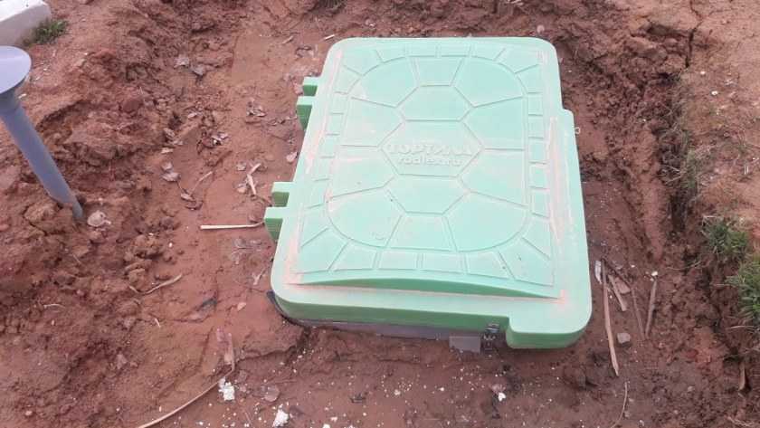 - Бурят скважину под накопительный колодец. Устанавливают накопительную ёмкость.